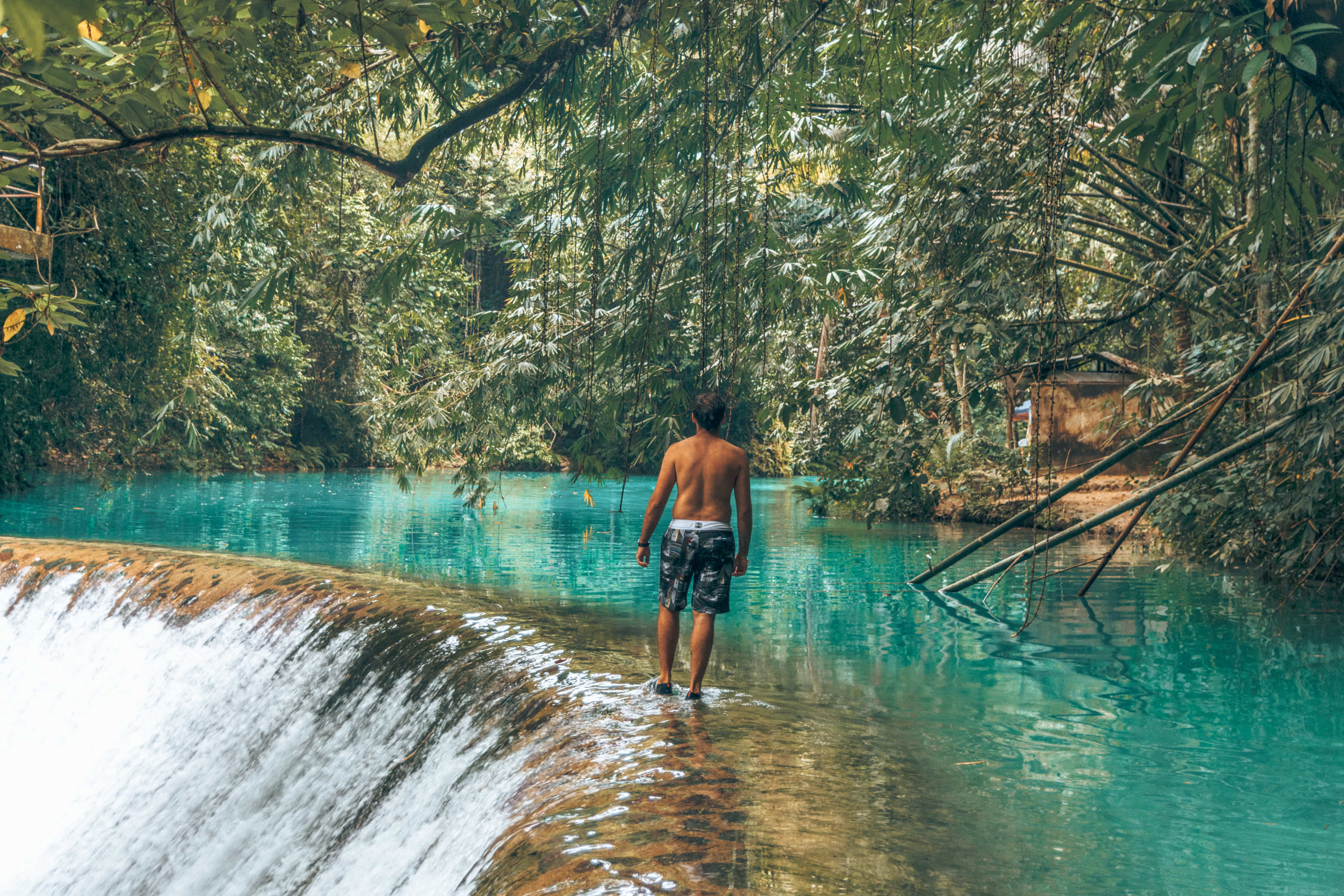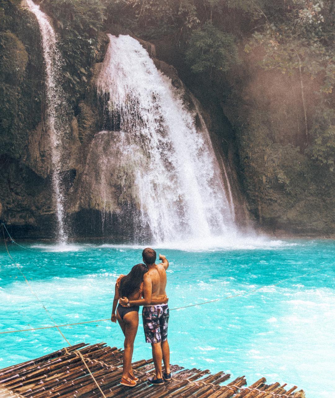 The water in Kawasan Falls is turquoise blue. You can swim and relax in these beautiful waterfalls. You can hike around the area and take nice pictures like we did. You can even rent a bamboo raft and go under the waterfalls, enjoying the experience and taking amazing shots as well.