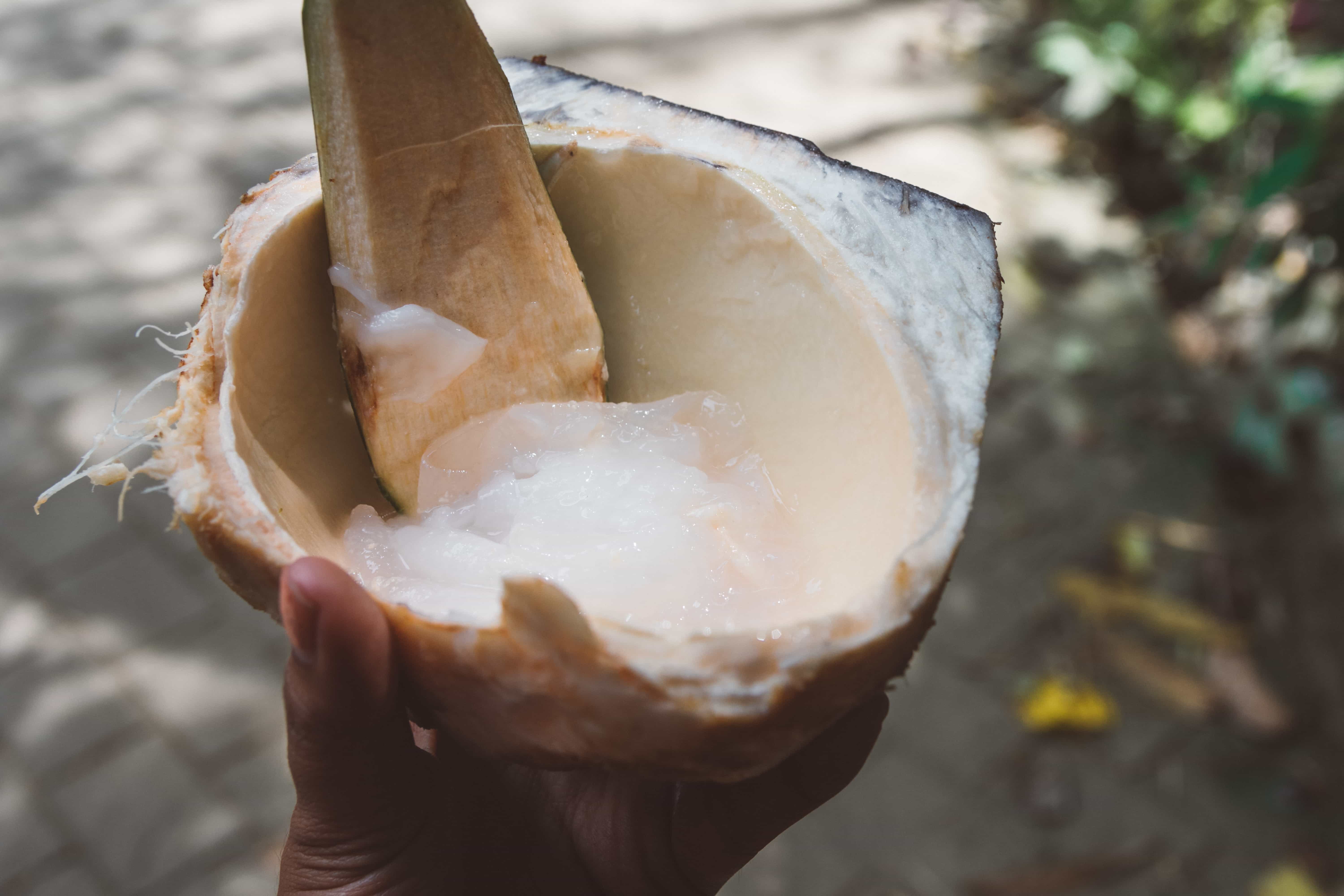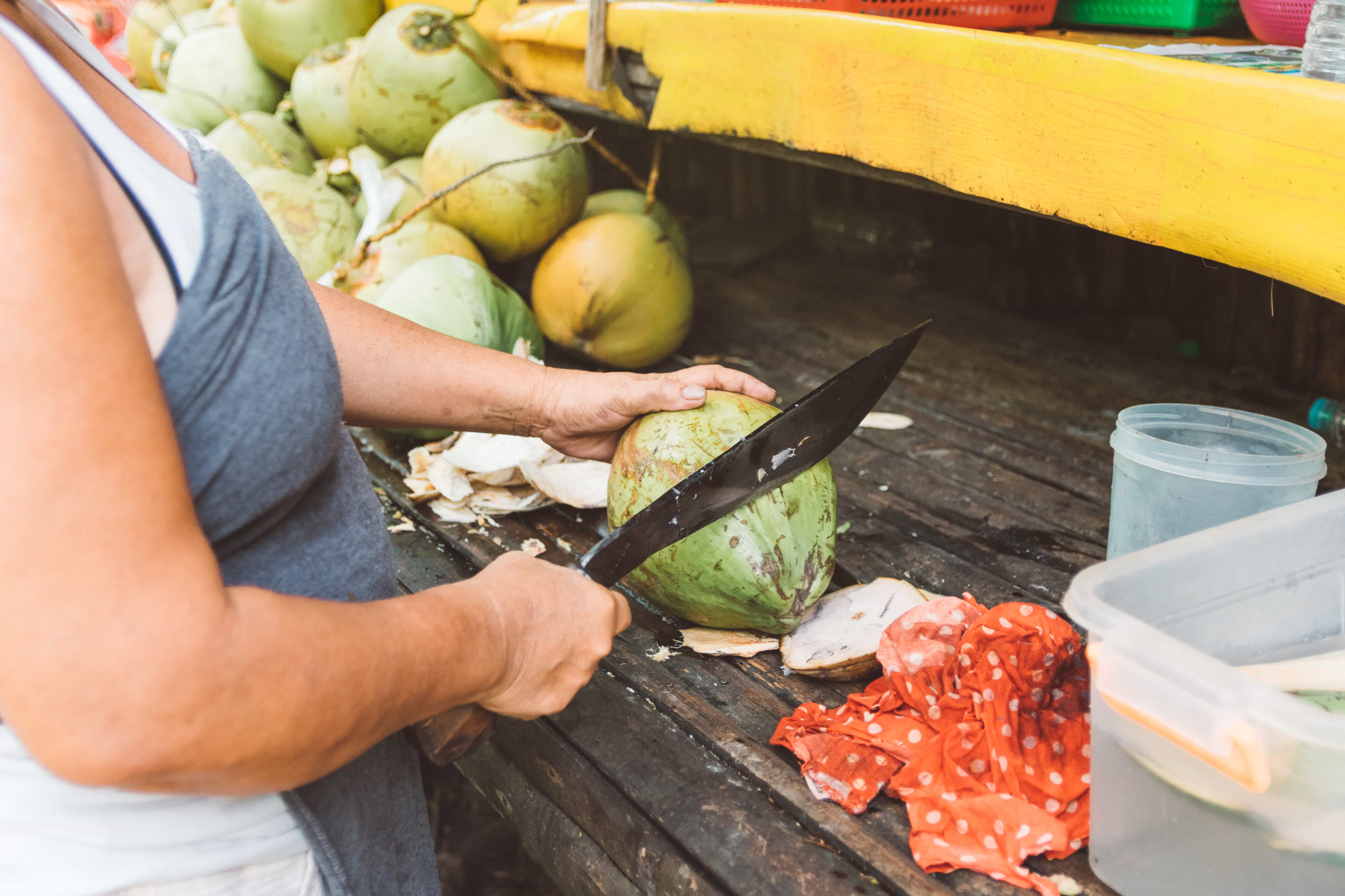 Walking to Kawasan Falls, you can find food stalls where you can buy a coconut (as both food and drink!) and a few snacks.